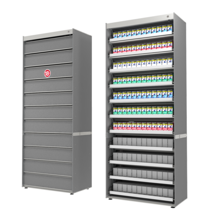 Przygotuj się na zmiany w przepisach dotyczących sprzedaży wyrobów tytoniowych dzięki regałom, szafom i ekspozytorom na papierosy od Perfecta Retail, wyposażonym w ruchome półki i klapkowy system zamykania. Zorganizuj ekspozycję i sprzedaż papierosów w swoich sklepach i zabezpiecz się przed zmianami prawa.